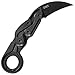 SPECS: 3.4 inches long black stainless steel knife features a partially serrated clip point blade; 4.8 ounce lightweight utility knife and EDC knife handle is made of hard-anodized 6061-T6 aluminum.