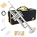Trumpet Package Includes: silver plated 7C mouthpiece, and trumpet accessories that include soft polishing cloth, Cleaning Kit and a pair of gloves.