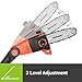 Thumb Lever Clasps to Maintain Reach: Extend to needed length for branch, then tighten screws with screwdriver to prevent pole slippage. Screws can also be used to adjust thumb lever tension