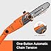 [AUTOMATIC CHAIN TENSIONING] This tool-free system won’t ever over-tighten the chain, giving you optimal tension every time out, and extending the life of the bar and chain
