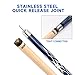 DESIGN: 12mm glued on a multi-layer leather tip, quality fiber ferrule. Stainless steel quick release joint technology. Pressed solid-black nylon line wrap and black butt cap, the butt has a black rubber bumper is more resistant to falling.
