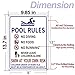 The pool rules sign measures 13.4 x 9.4 inches, big enough to be noticed