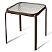 Practical and sturdy: The top is made of tempered glass, which gives the table an elegant look and makes it easy to clean up coffee drips or other stains. Rounded corner reduces the risk of injury. The table measures 16" L x 16" W x 17.5" H. The weight capacity is 50 lbs.