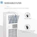 WASHABLE AIR FILTER: The removable and washable air filter helps to protect your family and living space from dust and pet hairs. The clean filter indicator on the control panel will turn on when it is time to clean your filter