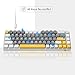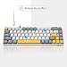 Full anti-ghosting keyboard: all 68 keys are no conflict, white grey yellow mash up design, ergonomic suspension double-color injection keycap, double kickstand feet adjustable typing angle and detachable usb cable, both practical and beautiful.