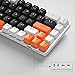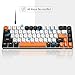 Full anti-ghosting keyboard: all 68 keys are no conflict, black white orange mash up design, ergonomic suspension double-color injection keycap, double kickstand feet adjustable typing angle and detachable usb cable, both practical and beautiful.