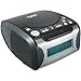 Built-in clock with alarm and snooze; measures 6.0 x 1.5 x 5.0 inches (W x H x D); 1-year warranty