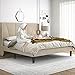 【Upholstered design & Modern Style】Perfect for modern bedrooms, the queen upholstered platform bed frame is not only stylish but functional as well. Classical neutral-toned linen fabric upholstery, which is skin-friendly, breathable, and wear-resistant, adds sophisticated style to any bedroom.