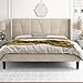 【Classic & Modern Charm】The king bed frame is completely upholstered and padded for a premium look and feel. High quality linen fabric is selected to add tailored touch and upscale aesthetic. Graceful arched profile, classic bronze nailhead trim, diamond stitches and tufted button lend chic and subtle beauty, setting the tone for a bedroom of livable elegance