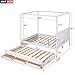 【Modern Canopy Bed Frame】 Wooden canopy bed with White finish has a sleek exterior profile, built-in headboard, with clean lines for a timeless look. Overall Product Dimension: 79.5” L x 57” W x 72” H, Bed Fits standard Full size mattress, Trundle Bed Fits standard Twin size mattress (mattress not included)