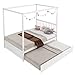 🧸【Solid Wood Construction】Supported by solid wood structure, the canopy bed performs excellent sturdiness, improving full bed’s load capacity up to 600 lbs and trundle’s up to 200 lbs. Also, many plywood slats locate evenly to highly reduce the noises generated by turning over.