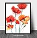 MODERN BOTANICAL ART PRINTS FOR YOUR HOME - Beautiful large watercolor bouquets of poppies with their stems in shades of red & orange on white.