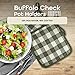 High-Quality: These stylish pot holders are made of 60% polyester and 40% cotton. Buffalo Check Pot Holders are stain repellant, so you don’t have to stress about food spills.