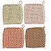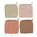 This farmhouse-inspired set of square cotton pot holders features 4 styles of multicolor crocheted designs