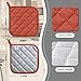 2. High Quality Fabric - Pot holders for kitchens made of polyester fabric, the thickened premium cotton infill helps to bear high temperature. Soft cotton lining provides a comfortable and breathable touch and ensures flexibility when using the kitchen potholders. Tight cross-stitched details ensure each hot pad is durable enough for everyday use, protects your hands from getting burned and won't unravel after washing.