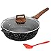 Eco-friendly Non-Stick Granite Coating & Super Easy to Clean - Our deep frying pan interior is coated by non-stick granite coating, SGS approved, 100% PFOA free. Require less oil or butter for cooking and minimal scrubbing for a spotless clean, giving you a healthier and more enjoyable at-home cooking experience.