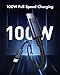 ✔【100W USB C Fast Charging】: 100W USB C to USB C cable has PD 4.0/3.0 and QC fast charging technology, supports up to 100W (20V/5A) output with USB-C Power Delivery adapters. The fast charge can fully charge a Samsung S20, from 0 to 100%, in 50 minutes. It can also charge a MacBook Pro 16" up to 75% in 1 hour - 58% faster than a 60W cable.