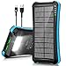 Dual USB and Powerful LED Light - It makes it easy to charge two smartphones simultaneously or a tablet at full speed. 2 led lights can be used as flashlight with Steady-SOS-Strobe mode. Five pilot indicators show the status of the battery charger timely. The green light on when charging by a solar, blue light on when USB charging.
