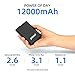 【Remarkably Compact Powerbanks】One of the smallest and lightest 12000mAh portable charger(94.5x62x22.2mm/3.7x2.44x0.87inch).and light weight (7 Oz). Compared with other 10000mAh portable chargers, The capacity increase 20%, The Volume decrease 25%, weight decrease 20%. The portable design make it's easy to take anywhere.