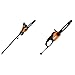 Earthwise pole saw max length is 8 feet and hedge pole trimmer max length is 8.8 feet