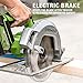 6 ADJUSTABLE SPEED & PATENTED MENTAL HANDLE- The handheld circular saw can operate in the range of 1200 RPM to 3500 RPM which allows you to control the speed to meet variable and precise cutting demands. Unique metal handle can be assembled on left or right, in order to adapt to the usage habits of different consumers and reduce fatigue