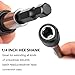 It is quick and easy to connect to 1/4" hex shank drill bit, To fasten the shank in place, use the hex key to tighten these screws