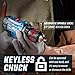 QUICK BIT CHANGES - 1/2 inch single-sleeve, keyless metal chuck allows for easy bit changes to keep your project going.