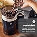 🪄 WORKS LIKE MAGIC - EASY TO USE! Transparent lid lets you monitor and control the grind coarseness by simply pressing the ON/OFF button. Saves time and effort compared to traditional hand manual coffee grinder. Through the clear lid you can observe the process and get coarse or fine coffee powder for french press, pour over, moka pot, espresso, cold brew coffee, coffee percolator or drip coffee makers.