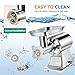 STAINLESS STEEL MATERIAL---This meat grinder is crafted with high-quality stainless steel, making it a durable, long-lasting, and easy-to-clean appliance. Its compact size and 28lb weight make it easy to store and use, while the food-grade stainless steel blades ensure safe and precise meat grinding. When it comes to cleaning, this electric meat grinding machine is a breeze to disassemble, making the cleaning process simple and fast.
