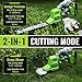 Upgrade Power Motor: WORKPRO cordless grass trimmer has been upgraded with a powerful motor, and the 2-in-1 design makes switching from mowing to hedging quick and easy. Even if you are a beginner, this handheld grass shear can meet your pruning needs.