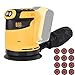 【5 INCH CORDLESS ORBITAL SANDER】Different from other corded random orbital sander, this 5" portable cordless sander with dust collection bag is more flexible and convenient to use both indoor & outdoor. We also provide you extra 20pcs sandpapers #60 #80 #120 #180 #240 and 3pcs polishing sponges. Great for quickly clearing away materials like paint, stain, and varnish, etc.
