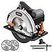 1500W Circular Saw【Powerful Electric Circular Saw】12-amp motor Circular saw with corded delivers 5,500-RPM, powerful 1500W for greater speed and faster cuts. A compact circular saw with 2 blades is ideal for laminate flooring, wood, plastics, PVC pipe, and plasterboard at ease. (1blade is 7-1/2"X5/8"X24T for wood, another blade is 7-1/2"X5/8"X40T for wood and soft-metal cuts)