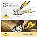 【Depth & Angle Adjustable】Angle adjusted freely at 0°- 45°; Depth adjusted freely from 0" to 1-1/2". Up to 1-1/2" at 90° and 1-1/16" at 45°. Angle and Depth adjustments help you make a variety of cuts in woodworking. Parallel guides ensure straight, precise cut