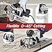 【Large Cutting Capacity 】Cut depth adjustment: 2-9/16" at 90°, 1-3/4" at 45° ; 0-45° bevel angles, Jellas circular saw tool afford you aggressive bevel cuts for a multitude of applications;