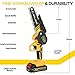 ✅TOOL-FREE INSTALLATION & TENSIONING - This mini chainsaw 6 inch has been assembled, you only need to rotate the knob to adjust the chain tension, the chainsaw can be easily installed and replaced without using any tools, it comes with a detailed and thoroughly English manual, pictures Described step by step. For safety, please pull out the battery pack of the electric chain saw when not in use.