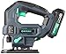 Cordless jig saw kit for making straight and curved cuts in soft wood, particleboard, plywood, and more