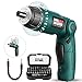 PACKAGE INCLUDES: Electric Screwdriver, (7 ) Screwdriver Accessory Bits, (1) Bit Extender, USB Cable and Power Adapter, Manual