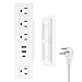 【Wall Mountable & Space Saving】 2 keyhole slots on the back makes our extension cord with multiple outlets easy to hang on the wall, behind sofa or underneath table, you can also leave the sleek socket on the floor. The extension cord 10 ft has a flat plug with ultra-thin extension cord design which does allow for tight spaces, such behind dresser, sofa or desk. A mush-have USB charging station ideal for home, office, kitchen, college dorm, bedroom, gaming room, guest room and travel. This white power strip only features 12 x 2 x 1.5 size, a gadget home office musy have.