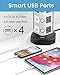 【4 High-Speed USB Ports】To achieve fast charging, this multiple socket charging station with smart IC technology can Auto-Adjust the charging rate for iPhone, iPad, wristband, smartwatch, and more electronic devices (max 2.4A/port, 4.5A in total).