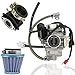 Material:Metal,Reliable quality,easy to install.Package includes:carburetor x 1pc,air filter x 1pc,carburetor adapter x 1pc,gasket x 1pc