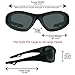 BUILT FOR MOTORCYCLE RIDING : There’s nothing more important than protecting your eyes while you ride. These motorcycle glasses wrap 180 degrees to stay on your head at high speeds without wiggling. Built in sweat proof foam cushion will block out wind, dust and debris; as well as provide a nice snug fit. Shatterproof Impact Resistant Polycarbonate lenses stands up to bugs, debris and flying rocks.