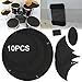 10 Pieces Mute Pads: Tom drum pad x 3, Snare drum pad x1,Bass drum pad x1, Snare wire pad x1,Cymbal pad x4,Drum sticks x1.