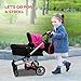 ❤SAFETY CERTIFICATION:The stroller is equipped with spring suspension system to easily adapt to various surfaces. The 5-point harness is effective in protecting the baby's safety. Widening tires are silent and wear-resistant. Safety wrist strap to prevent it from slipping away. Rear wheels will brake with one foot. It's a great choice for baby shower, birthday gifts, Christmas and other holidays.