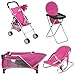 BEAUTIFUL PINK DENIM DOLL PLAY SET : Toddler-friendly design for interactive play, our baby doll playing set has a pink PACK n PLAY, INFANT SEAT for dolls, BABY HIGH CHAIR for dolls, and BABY DOLL STROLLER as part of the nursery set for baby dolls. Enjoy hours of pretend play with this 4 in 1 playset with a baby doll stroller that enhances creative imagination