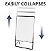Easel height easily adjusts from 40" to 67" at the touch of a button for tabletop or standing use; lightweight, black frame collapses to compactly store and transport easel