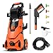 ✓ HUMANIZED DESIGN&CUSTOMER SUPPORT- Energy conservation, environment friendly, quieter than gas engine pressure washer.The high-pressure washer has 2 sturdy wheels and ergonomic telescopic rods; the hook is used to store wires, guns and soap bottles; it is very convenient to use. We offer a 2 year warranty and you can always contact us if you have any problems with your pressure washer. If you are not satisfied, you can get a full refund within 30 days! !