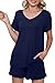Features: Summer pajamas for women shorts set have short sleeve, shorts, v neck, pocketsd, comfortable material features. Shorts made comfortable stretchy elastic waist desgin,loose fit, which is very relaxing to wear.Shorts with classic two pockets.