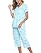 Design Features: Womens tow-piece pajamas set, Comfortable elastic waist capri pants, matching with V-neck short sleeve shirt (Part Round Neck),Beautiful prints and cute animal prints make these nightwear set cute and stylish.It is the perfect choice for home leisure.
