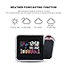 ⏰LARGE NUMBER DISPLAY WITH 8-COLOR CYCLE CHANGES: Large number displayed on LCD & wireless inside outside thermometer. Simply pressing the “-” button to adjust the backlit's 4 brightness mode, high - medium - low - out. Choose your favorite color for the backlit by using Loop and Rainbow function.