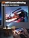 [Wireless Dual Band Movie Projector] This outdoor projector has 5/2.4G dual-band WiFi for smooth and quick smartphone syncing, allowing for high-quality and speedy gaming and video streaming. Create a cinematic ambiance by hanging the HD projector in your living room or bedroom.